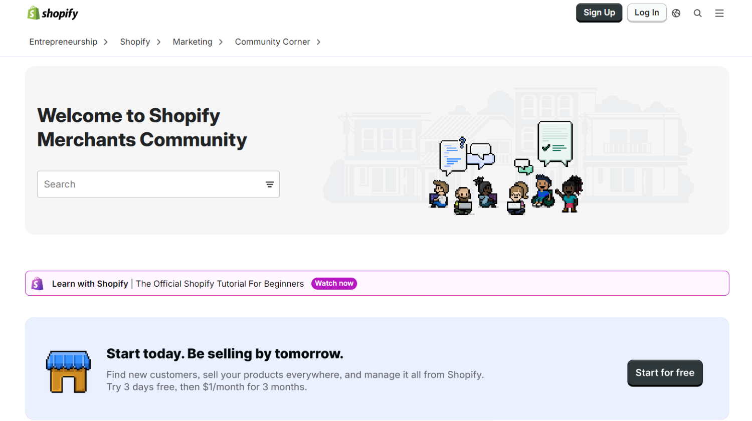 Registration for the community is free. Membership in the Shopify community also gives you the opportunity to attend online events.