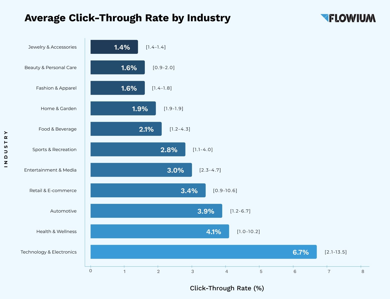 - Average CTR across industries: around 2.66%