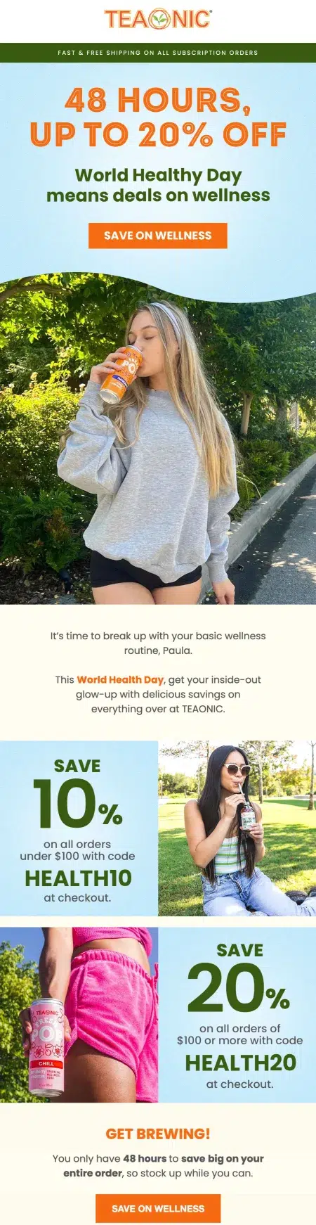 Newsletter Idea: Incentivize participation with unique discounts or wellness-themed gifts. Partner with local health groups or fitness influencers to provide weekly expert advice and resources.