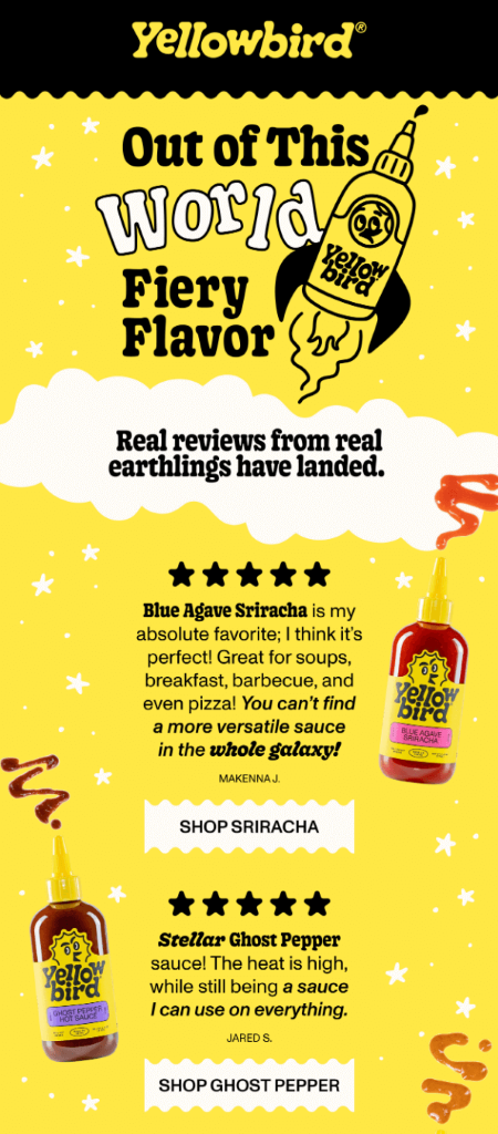 Create your top sci-fi books, movies, or games and invite customers to post their list with a hashtag you created. Promote products or experiences that bring out a sense of wonder, like VR headsets, telescopes, or sci-fi collection items.