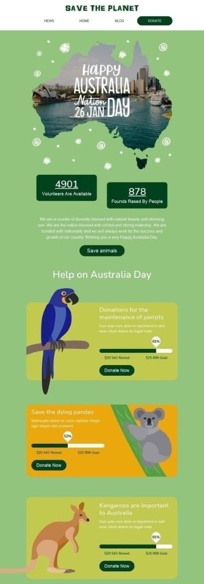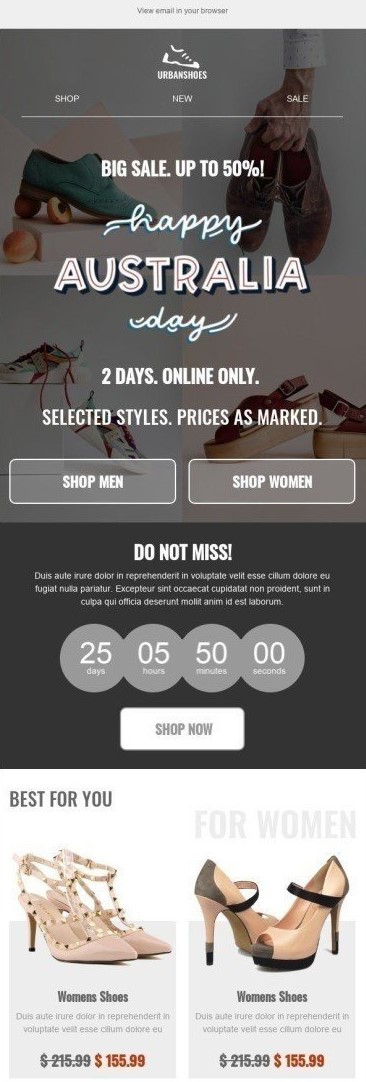 Email ideas: We advise you to design your emails in Australian symbols and be sure to congratulate your customers on this special day. Additional ideas might include mentioning your relationships or partnerships with Australian companies. You can make a special offer for Australian-related products if you have any. Make a giveaway among customers who will use the hashtag that you created under the photo of the Australia Day celebration.