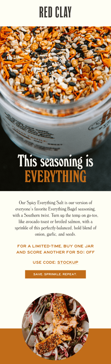 Make an interesting email design with a croissant. Share the history of the invention of this pastry and interesting recipes. Advertise things related to baking, both food and kitchen utensils. Partner with a bakery, or include a guide to making French treats at home.