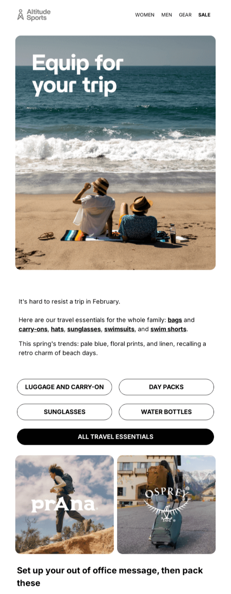 It is better to prepare for your vacation in advance. List unusual new travel destinations. Highlight travel accessories, journals, or vacation planning tools. Offer discounts on travel-friendly products or digital guides for popular destinations. This is also a good opportunity for travel agencies.