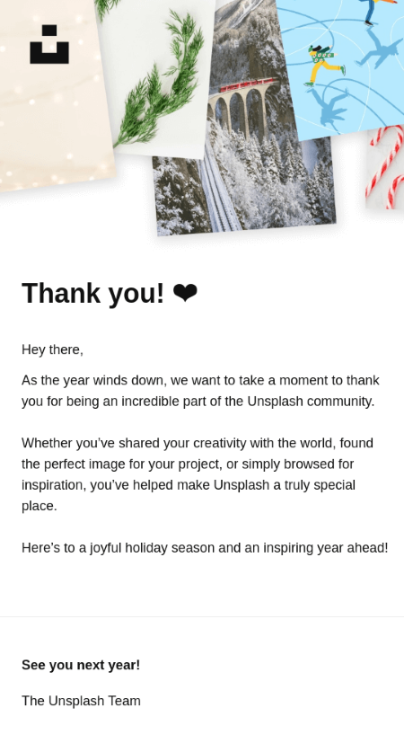 Although the first week of the new year is still a good time for new year newsletter ideas. You still shouldn’t forget that it’s a period of leaving the winter holidays, returning from a fairy tale to reality, and a symbol of starting a new chapter in life. So, you can make an email with announcements of new offers and new initiatives, as well as an invitation to enter the new year with you.