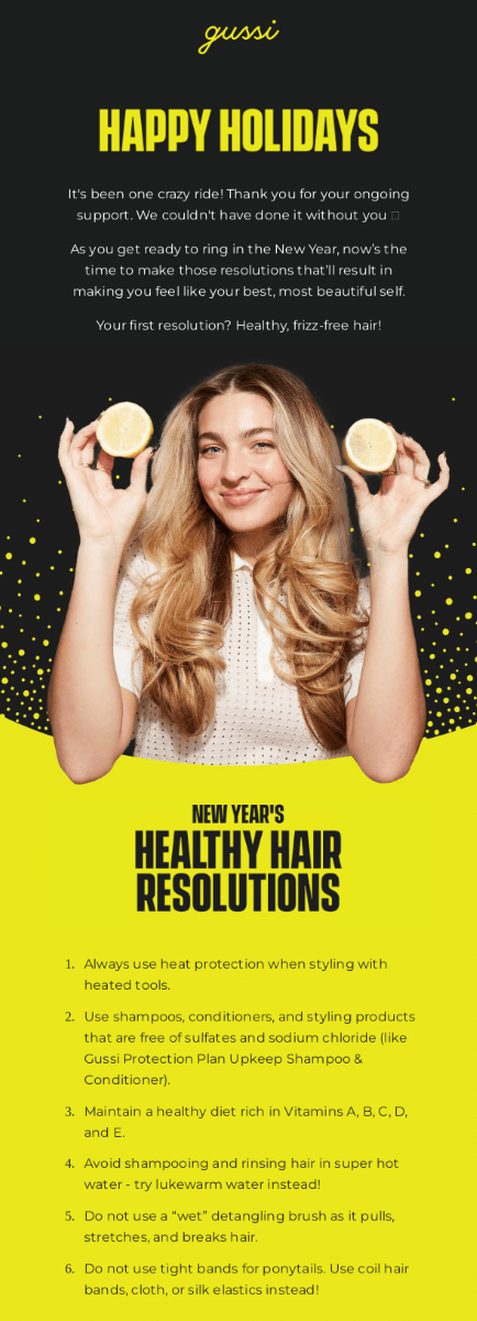 Use your subscribers’ names in the subject line or body of your emails to address their goals and resolutions, and make recommendations for goods or services that will help them reach their particular objectives, such as productivity tools or fitness regimens.