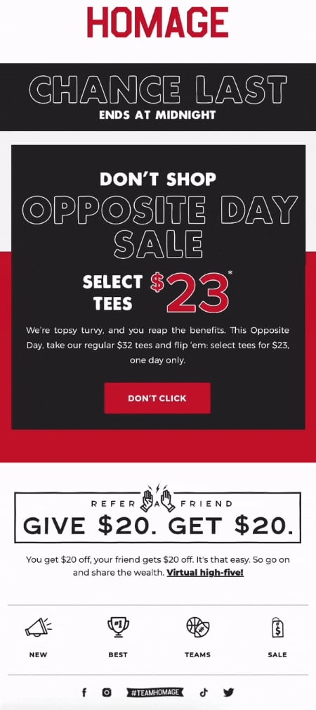 Share quirky opposites-themed discounts. For example, surprise discounts where the price is lower than expected. Run a fun poll with “opposites” or create a mix-and-match product bundle.