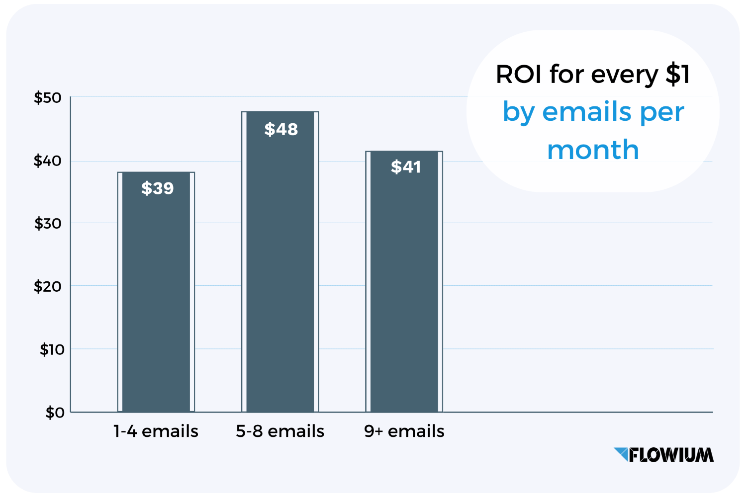 • Sending 5-8 emails per month yielded the highest return on investment of $48 to $1.