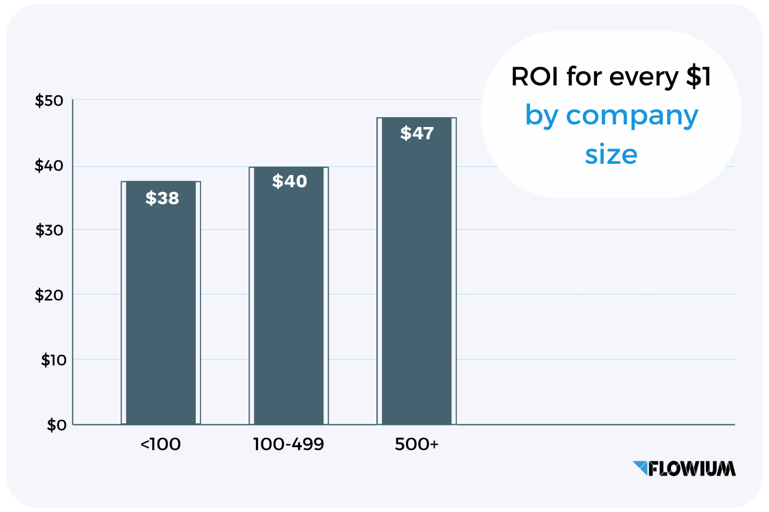 • The largest companies in the survey, with more than 500 employees, had the highest average return on investment, at $47 for every dollar spent.
