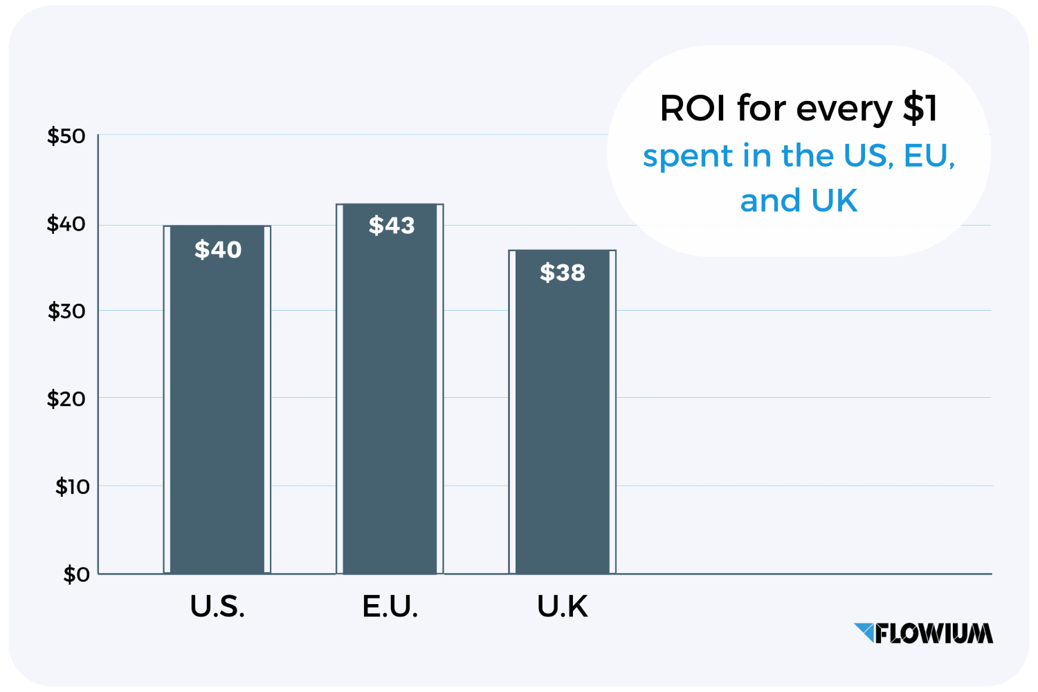 • Back in 2020, the United Kingdom had the highest rate among the regions at 1:45, reflecting a high annual growth rate. However, as of 2026, DMA reports an average ROI of $38 (£28.50), showing a slight decline.