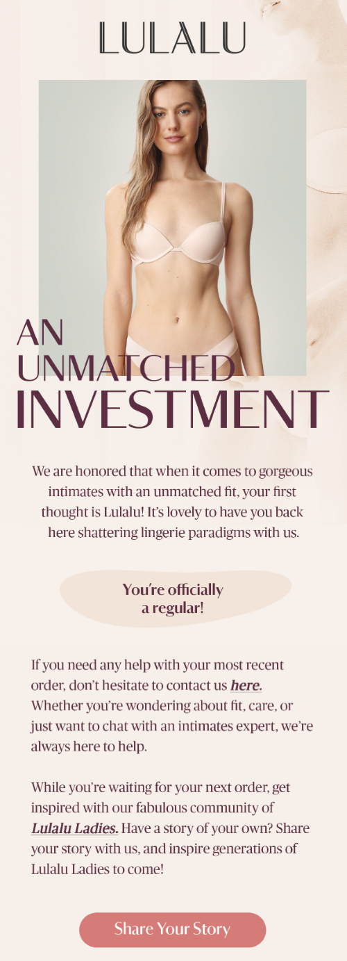 These flows introduced customers to complementary products and encouraged future purchases. Additionally, we launched loyalty and referral programs that aligned with Lulu’s community-driven brand identity.