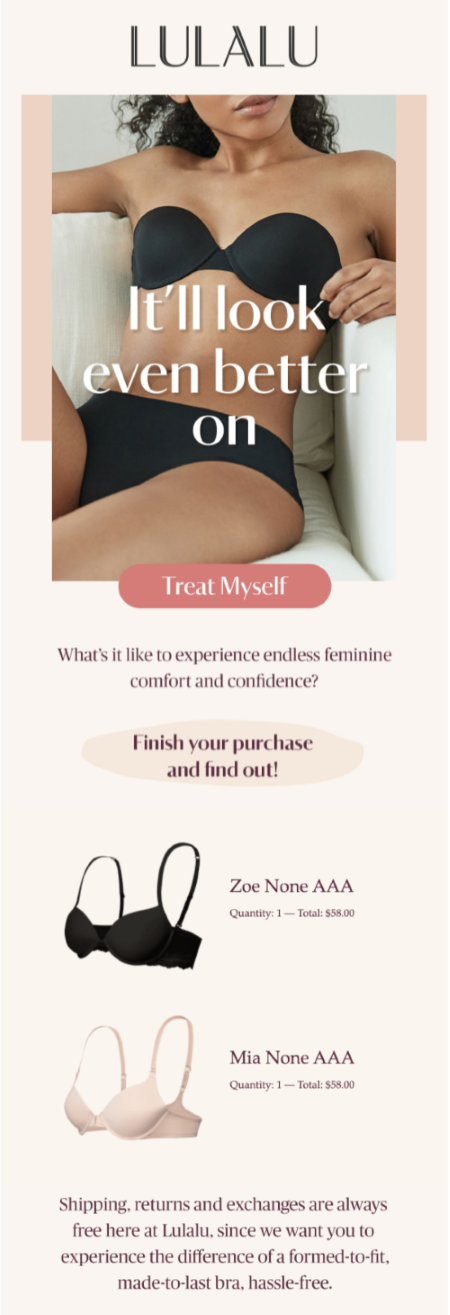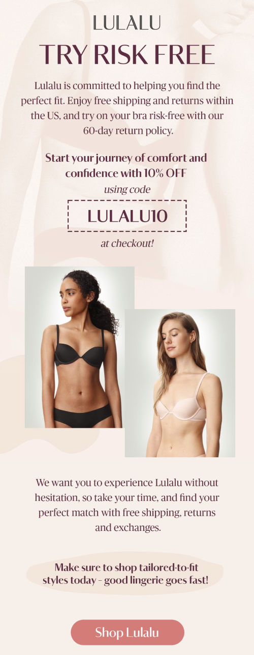 The automated bra fitting quiz played a major role in improving acquisition quality. Customers completed the quiz to determine their ideal bra size and style, and their personalized results were delivered via email.