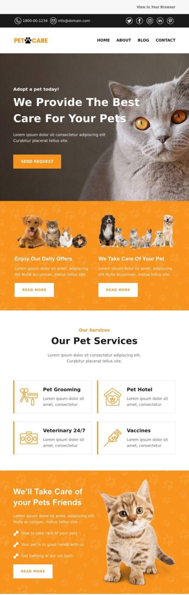 Newsletter idea: Launch a campaign offering pet products, or include a charitable component with donating a percentage of the sales to local animal shelters. Share adoption stories or set up a full-scale social media campaign where followers can share stories about their pets.