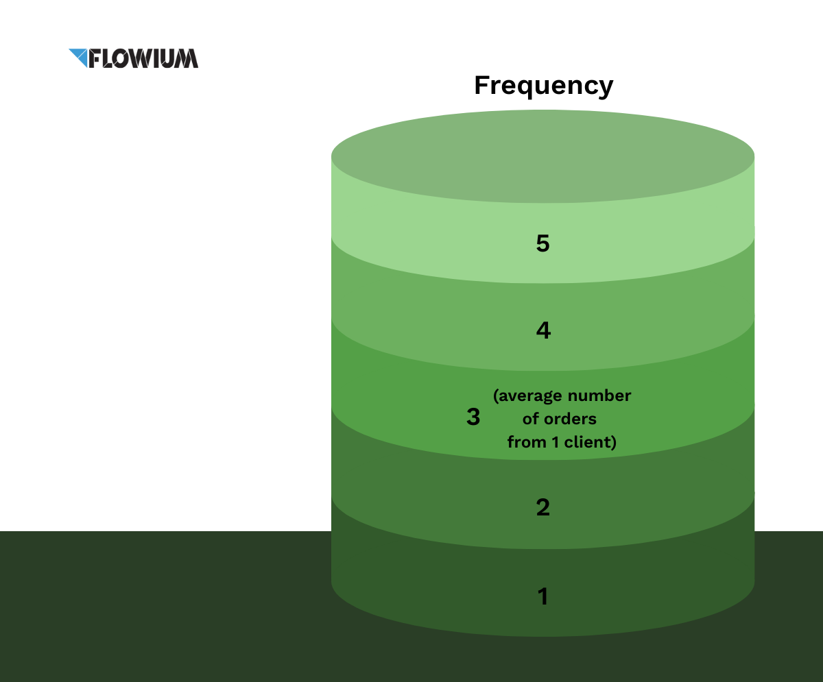 Frequency is one of the RFM models completely based on your industry. Here, you can calculate the average number of purchases per customer, and based on this number, evaluate customers as shown in the diagram. Using detailed data from the frequency sector, you can often create a business-to-business relationship. Frequency is also considered quite important, so customer ratings based on this principle are usually multiplied by 2.
