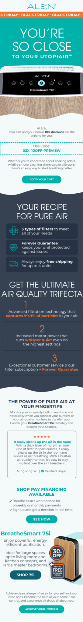 The Flowium team crafted messaging that reinforced the BFCM offer through FOMO and urgency. For product-specific discounts, we tailored emails to highlight each product’s features, exclusivity, and superior value.